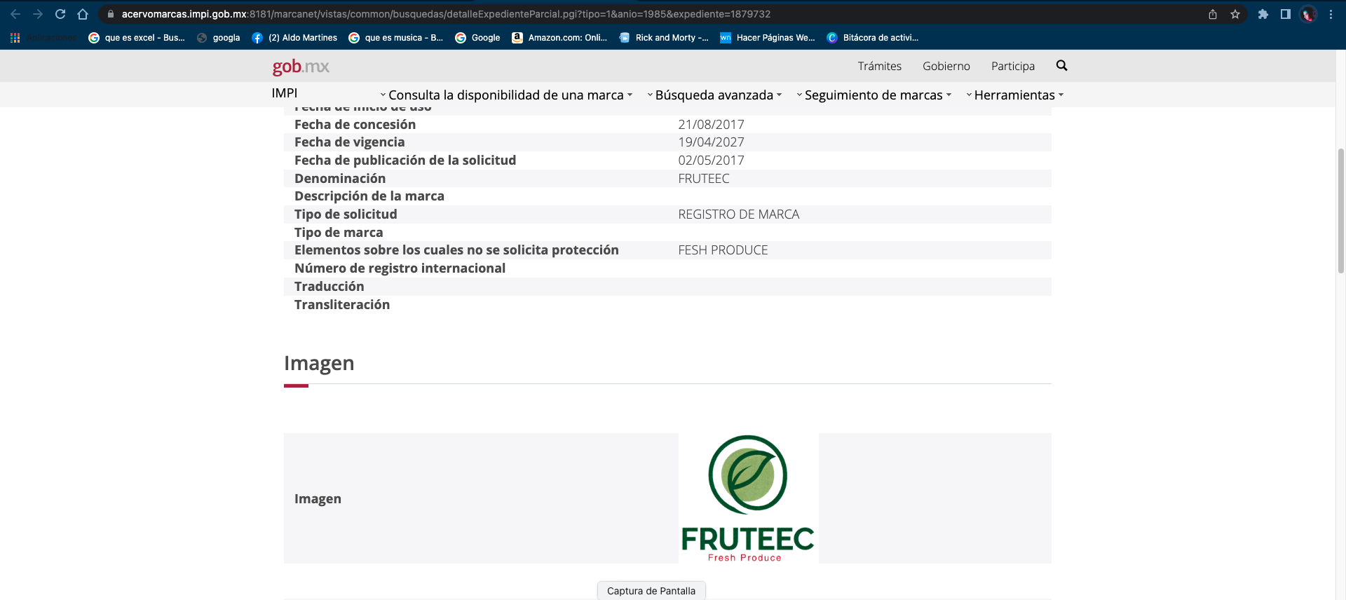 Posteriormente, acude a hacer una búsqueda en el portal de registro de marca de tu país, en este caso siendo México, mi país de nacionalidad, me enfocaré en explicar cómo sería la búsqueda en el IMPI (El Instituto Mexicano de la Propiedad Industrial), el cual es un Organismo público descentralizado con personalidad jurídica y patrimonio propio y con la autoridad legal para administrar el sistema de Propiedad industrial en México.